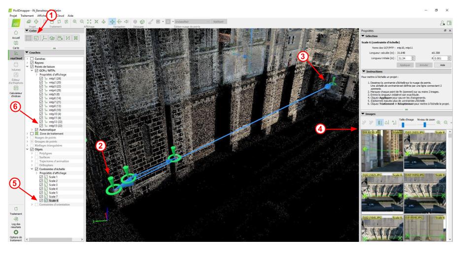 Deuxième méthode de mise à l’échelle sur Pix4D (avec l’aide de deux points de liaison) :